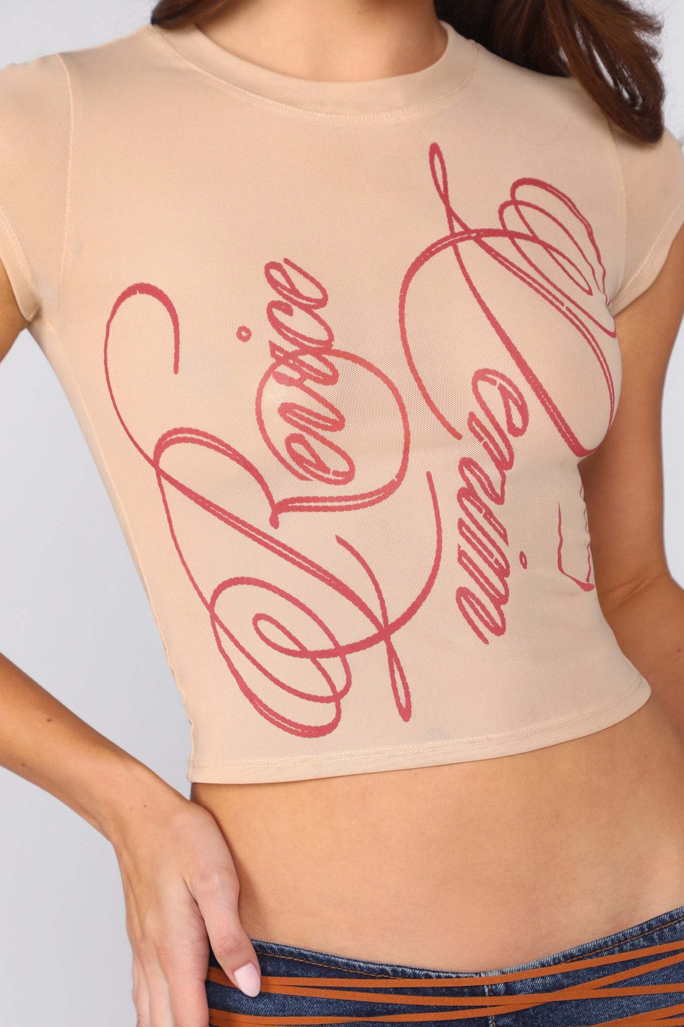 Say it soft, say it bold. Our Adriana Tee is the ultimate lover-girl staple—delicate enough to feel dreamy, cheeky enough to turn heads. With a flirtatious script front and just the right amount of see-through, this top is your new go-to for layering, lounging, or catching your crush's attention. Pair it with your favorite denim, mini skirts, or nothing but confidence.