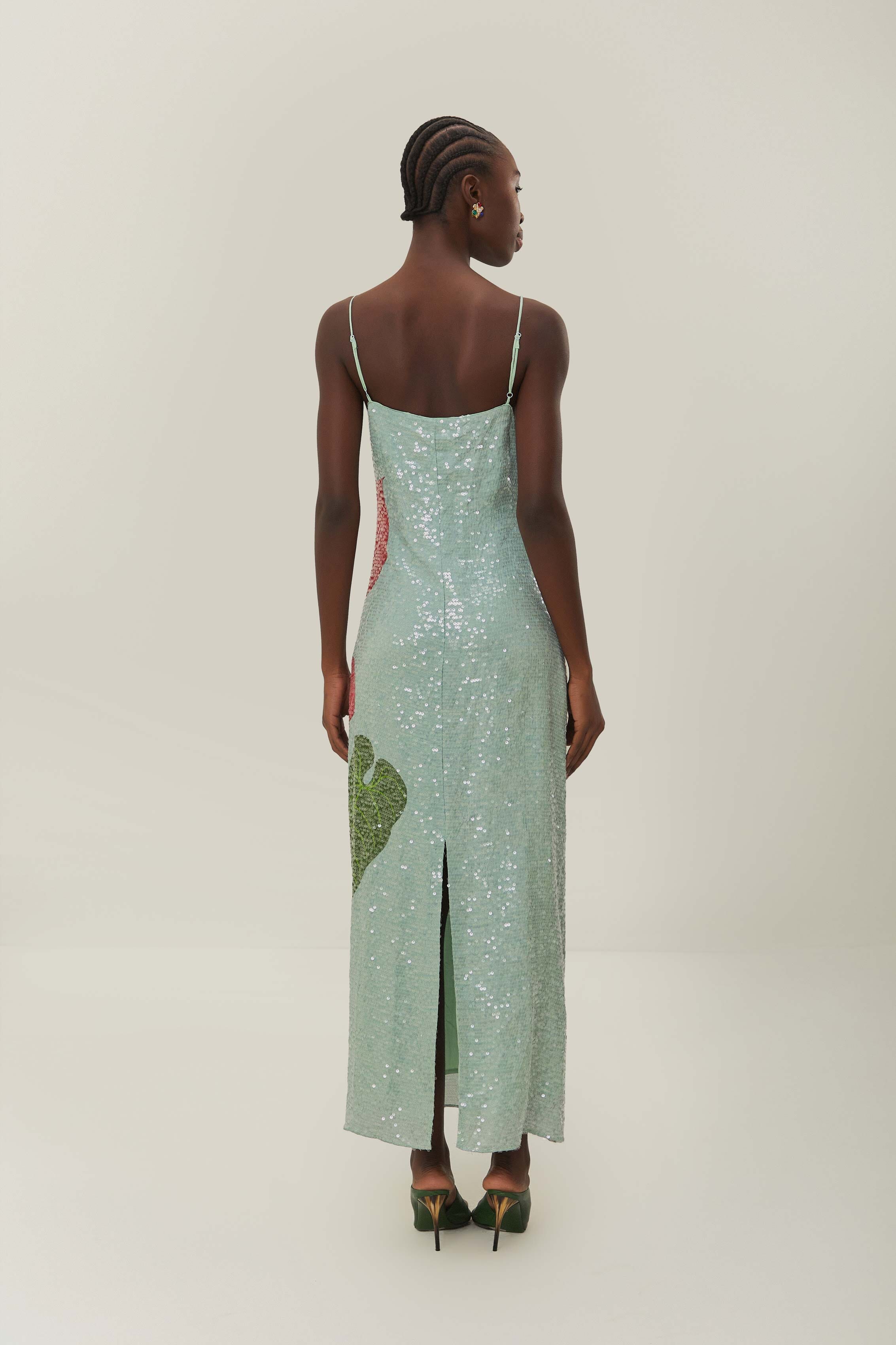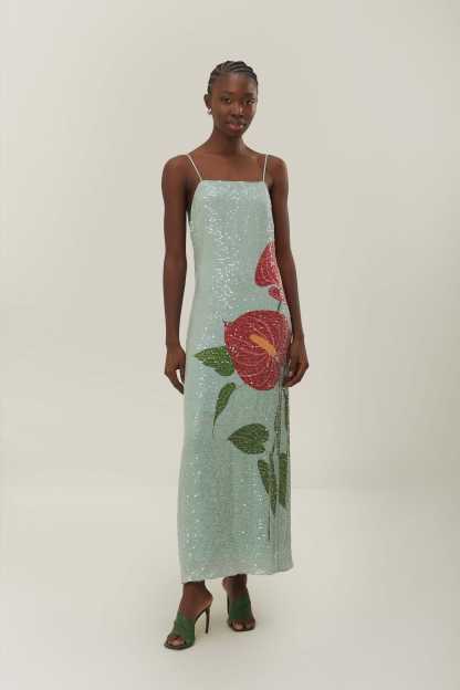 ANTHURIUM FLOWERS BLUE SLIP MAXI DRESS