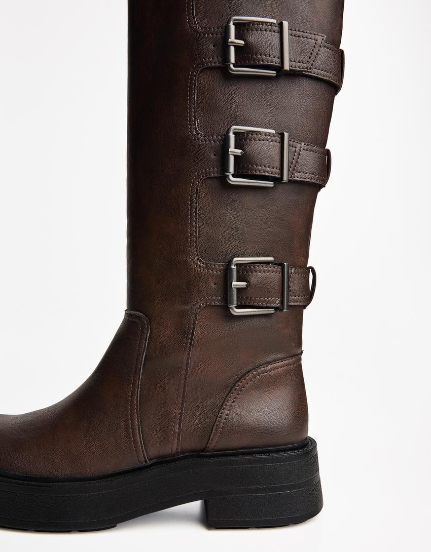 Flat boot with buckles