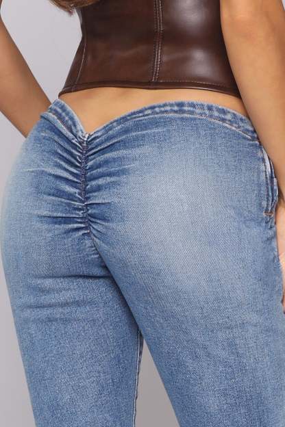 The Cali’s signature cinch design gives you that peachy, sculpted booty you didn’t know you needed. With its low-rise waist and baby boot-cut fit, this jean keeps the effortless 'it girl", sexy energy on display.