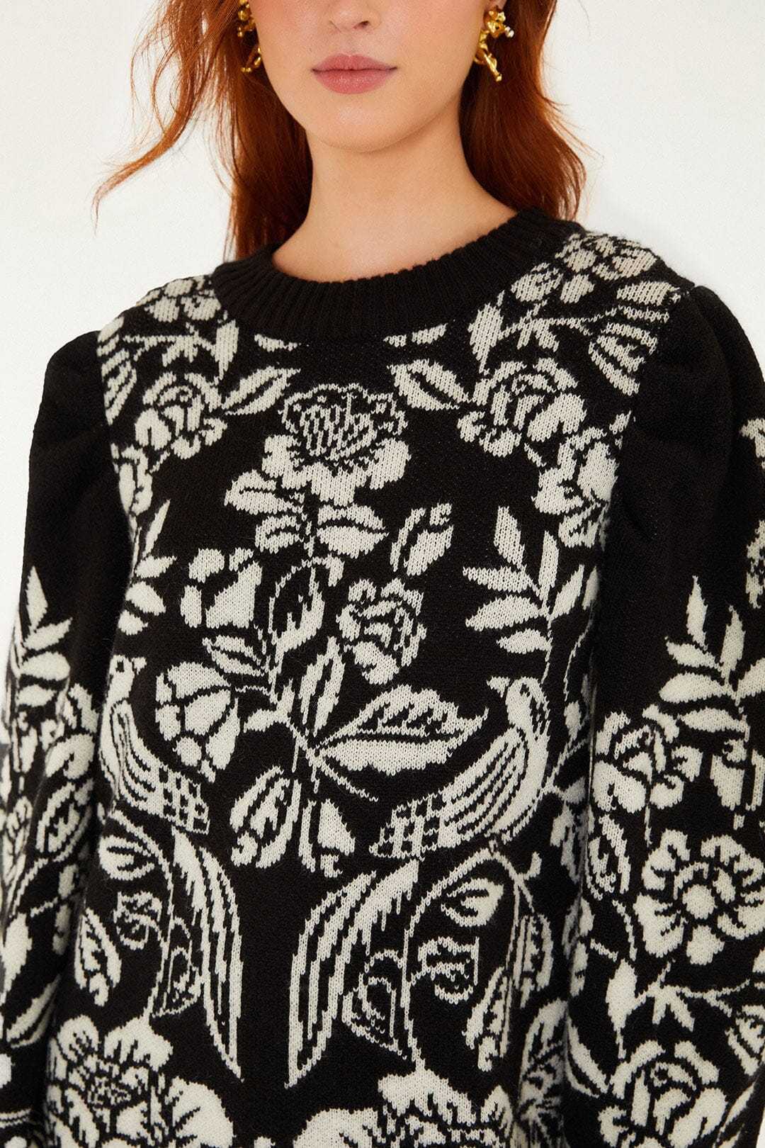 Black And White Cashew And Birds Knit Mini Dress