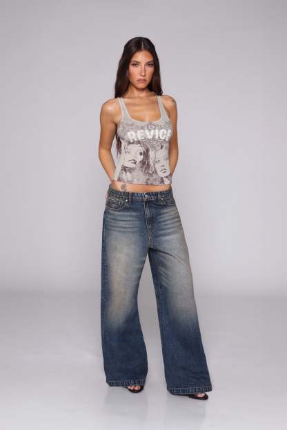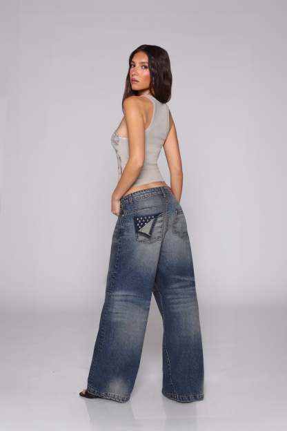 The Empire Jean is your go-to for a laid-back look. These vintage-inspired, wide-leg jeans feature an oversized fit and relaxed vibe, perfect for pairing with a graphic tee or crop top. Finished in a dark wash with an easy, effortless flow—now updated with our new tiger embroidered graphic—The Empire Jean is ready for any occasion. Comfort with an edge, whether you’re lounging or heading out.