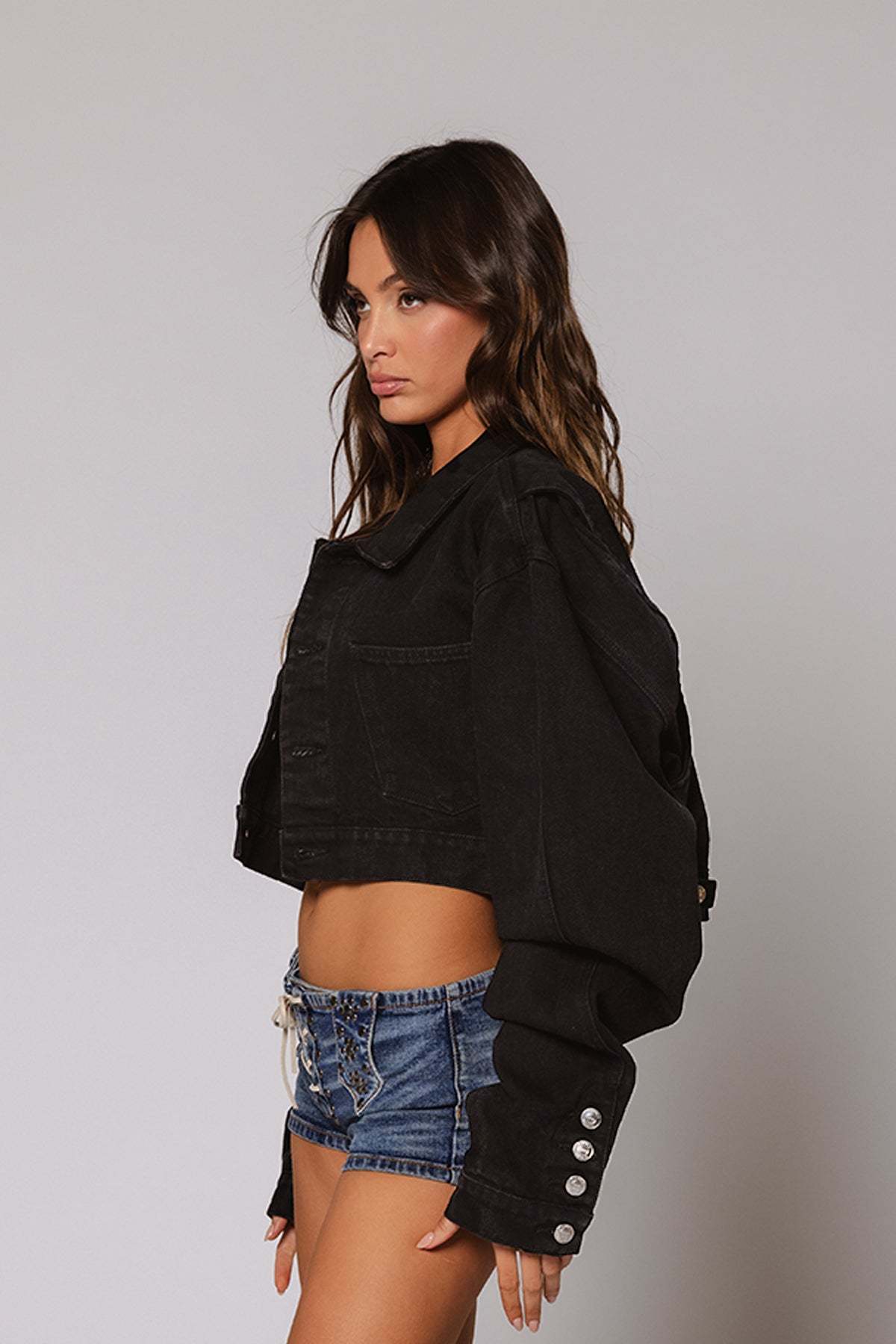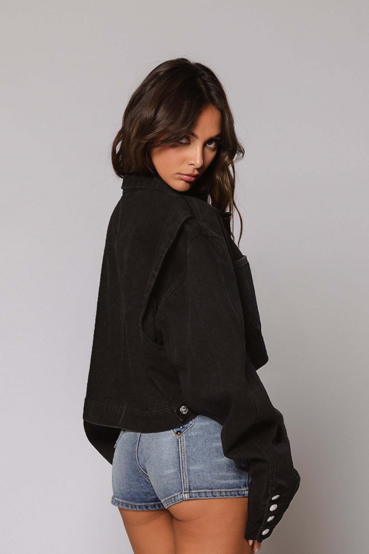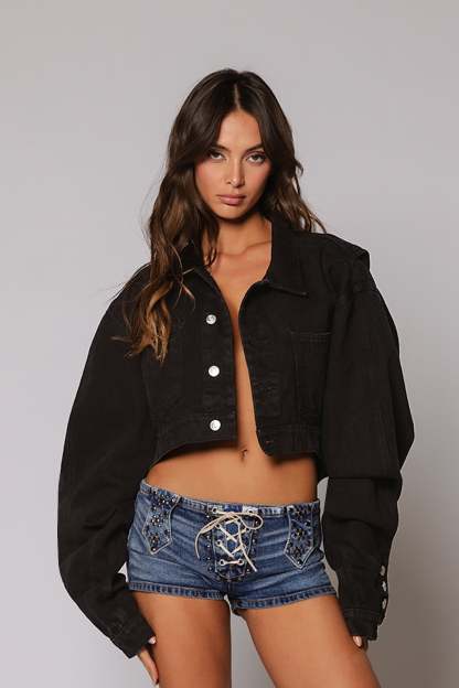 Designed for those who aren’t afraid to stand out, The Hunter Jacket redefines casual wear, blending comfort with high fashion. Its extended arm and button-up hem allow versatile styling options, going beyond your usual fit. Paired with our Hunter Jean, this Jacket will give you the ultimate scrunch effect. Now in Jet Black.