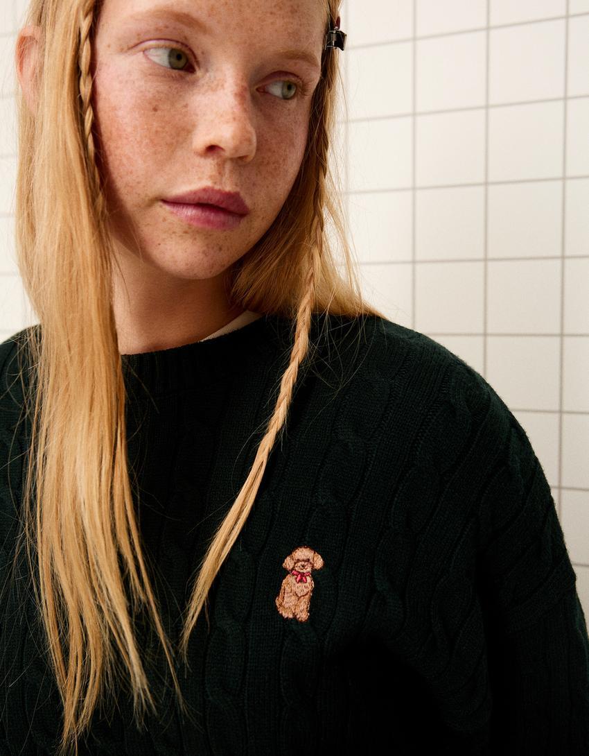 Embroidered braided sweater