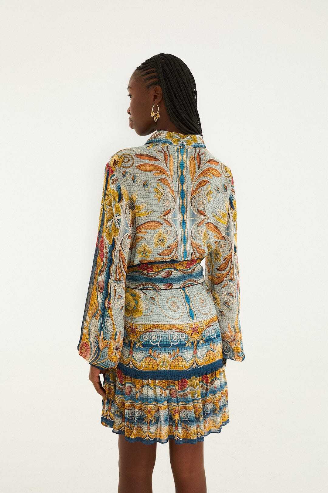 Blue Mosaic Garden Belted Mini Dress