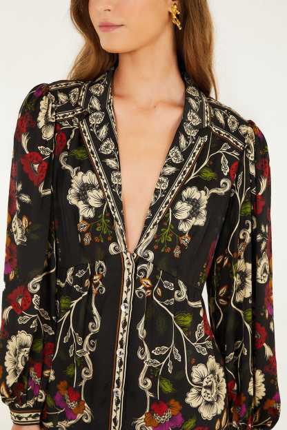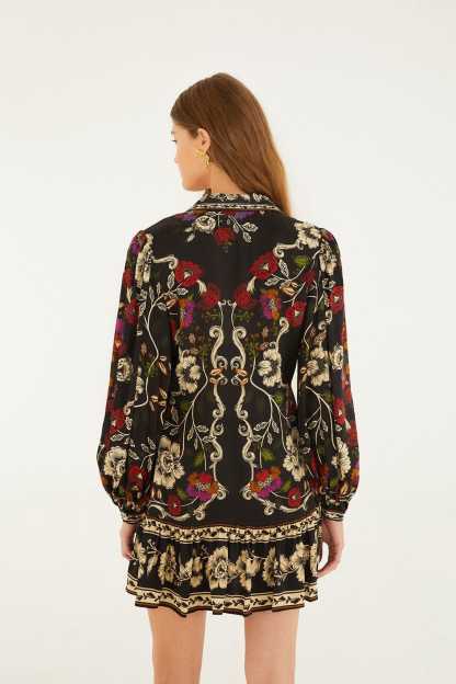 Black Rococo Flowers Lenzing™ Ecovero™ Viscose Mini Dress