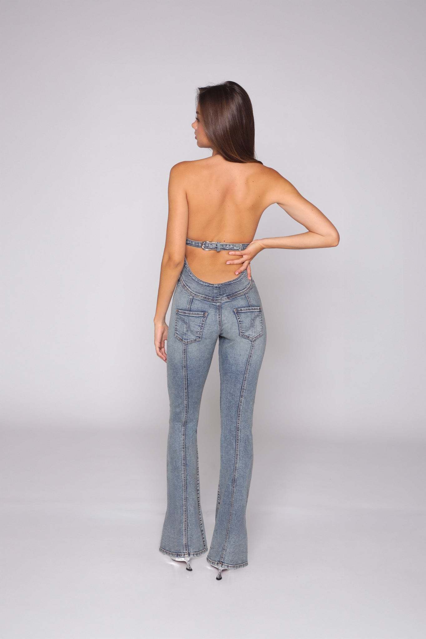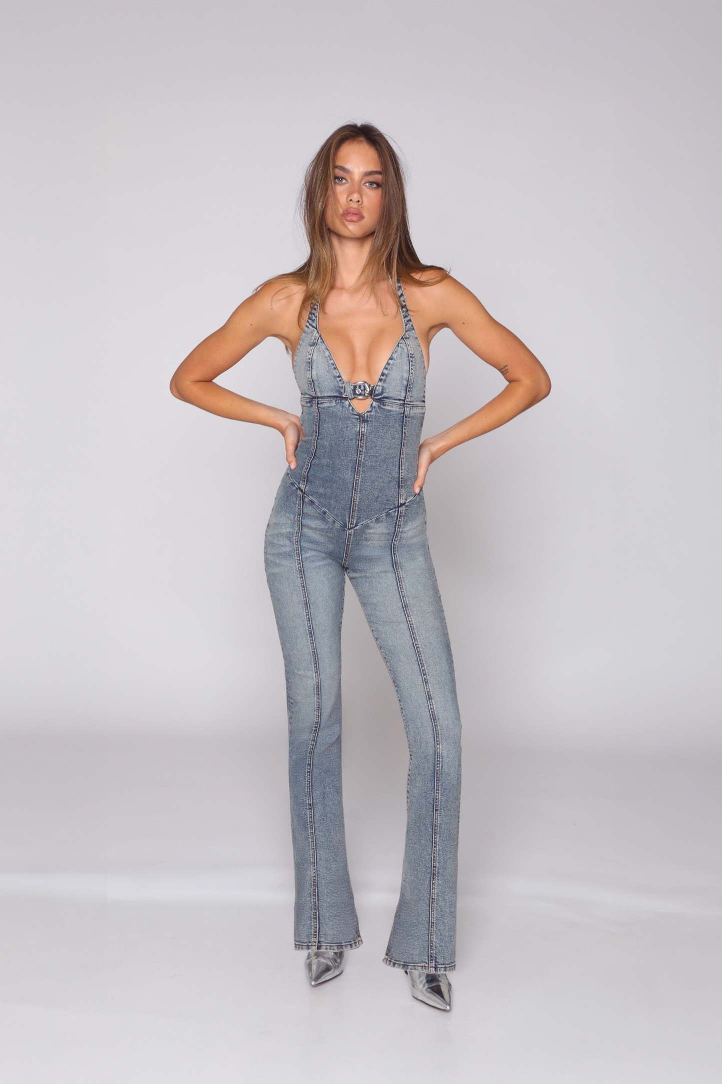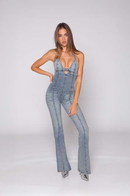 The Sweetheart Jumpsuit is cut to contour every curve, she zips up the front and features a daring buckle detail that pulls it all together — right where it counts. Designed to lift, shape, and make an entrance, she’s serving garage glam meets heartbreaker energy. Our Sunset Blvd blue denim wash, treated with potassium spray, gives that lived-in, road-tested edge that only gets hotter with every wear. Slip in, buckle up, and let the stares follow.