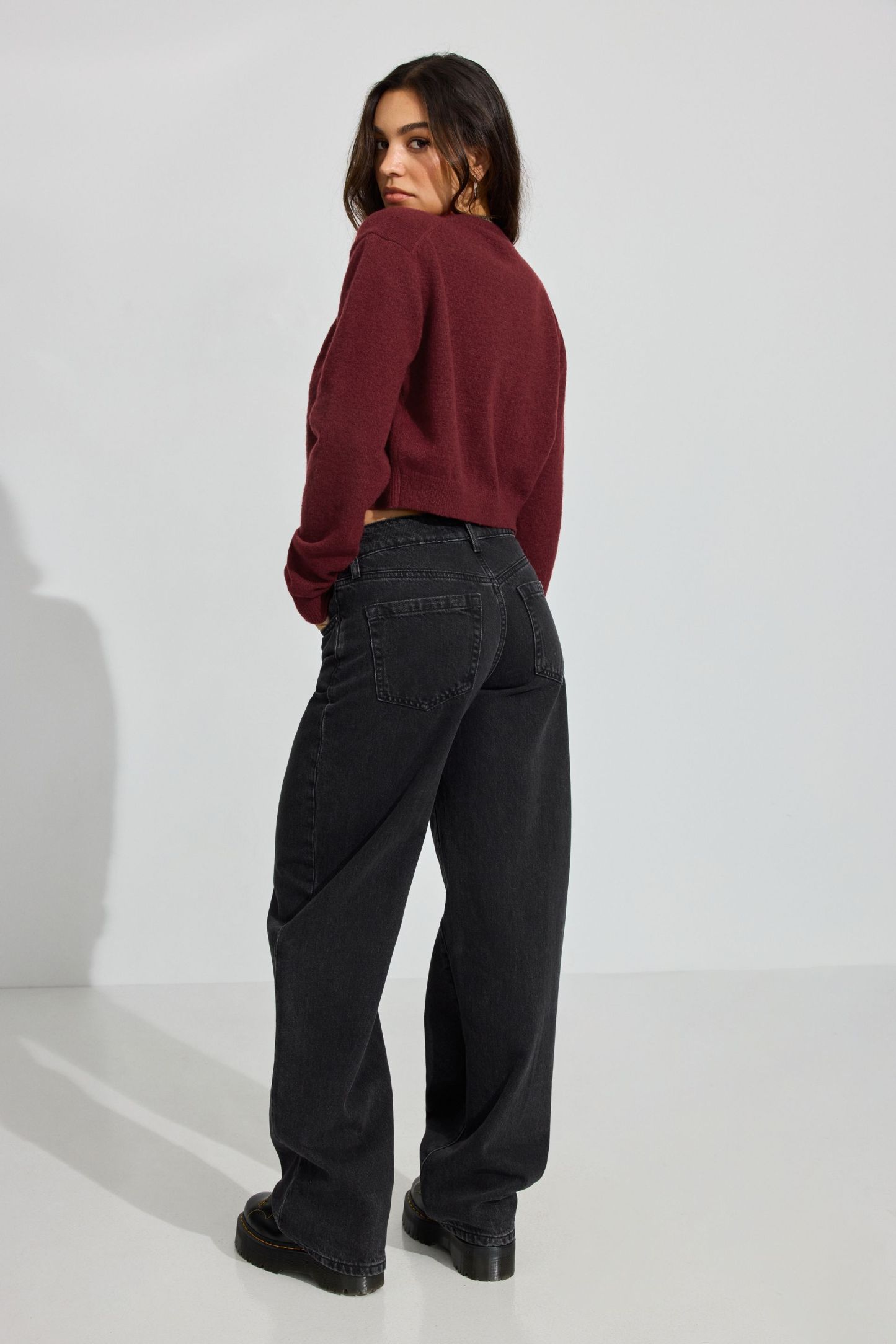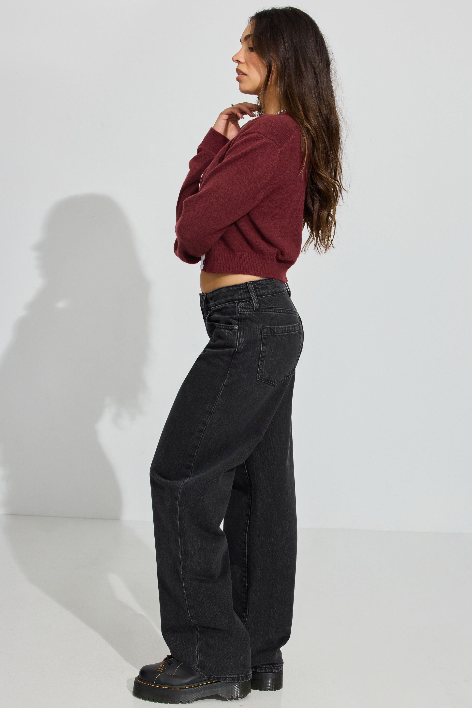 These baggy fit jeans sit low on the hips and come with a bigger, full-length leg that bunches at the bottom. Perfect for your biggest sweater or your tiniest shirt.