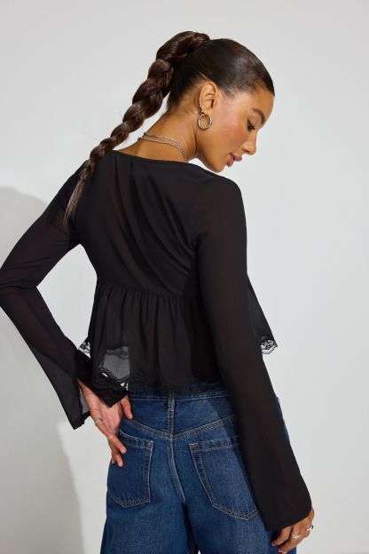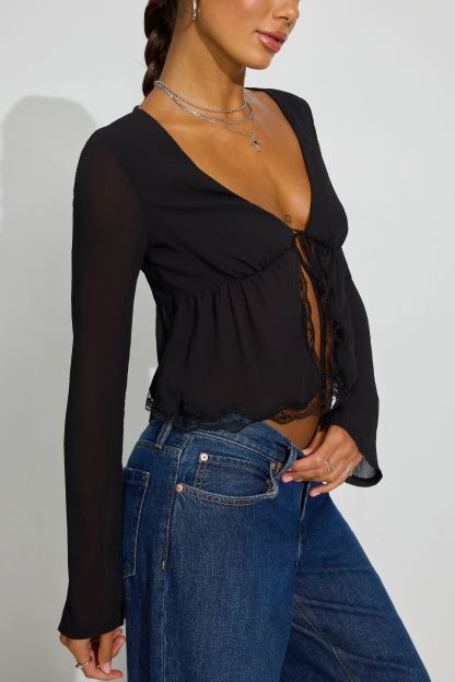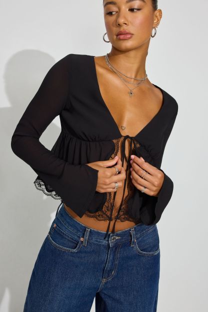 Georgette Lace Trim Flyaway Top
