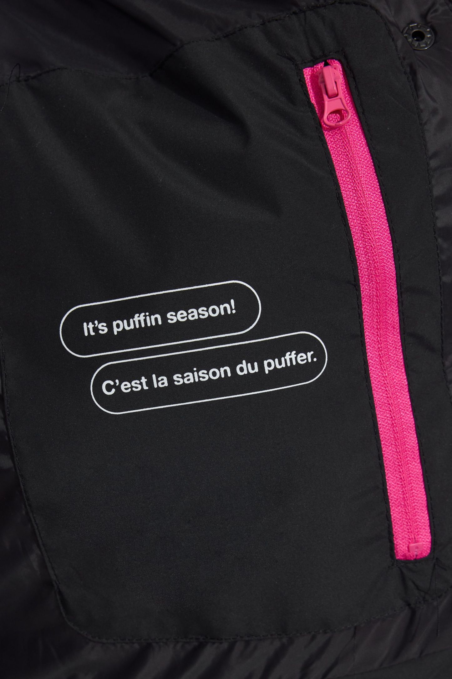 - Front zip closure with snap button placket