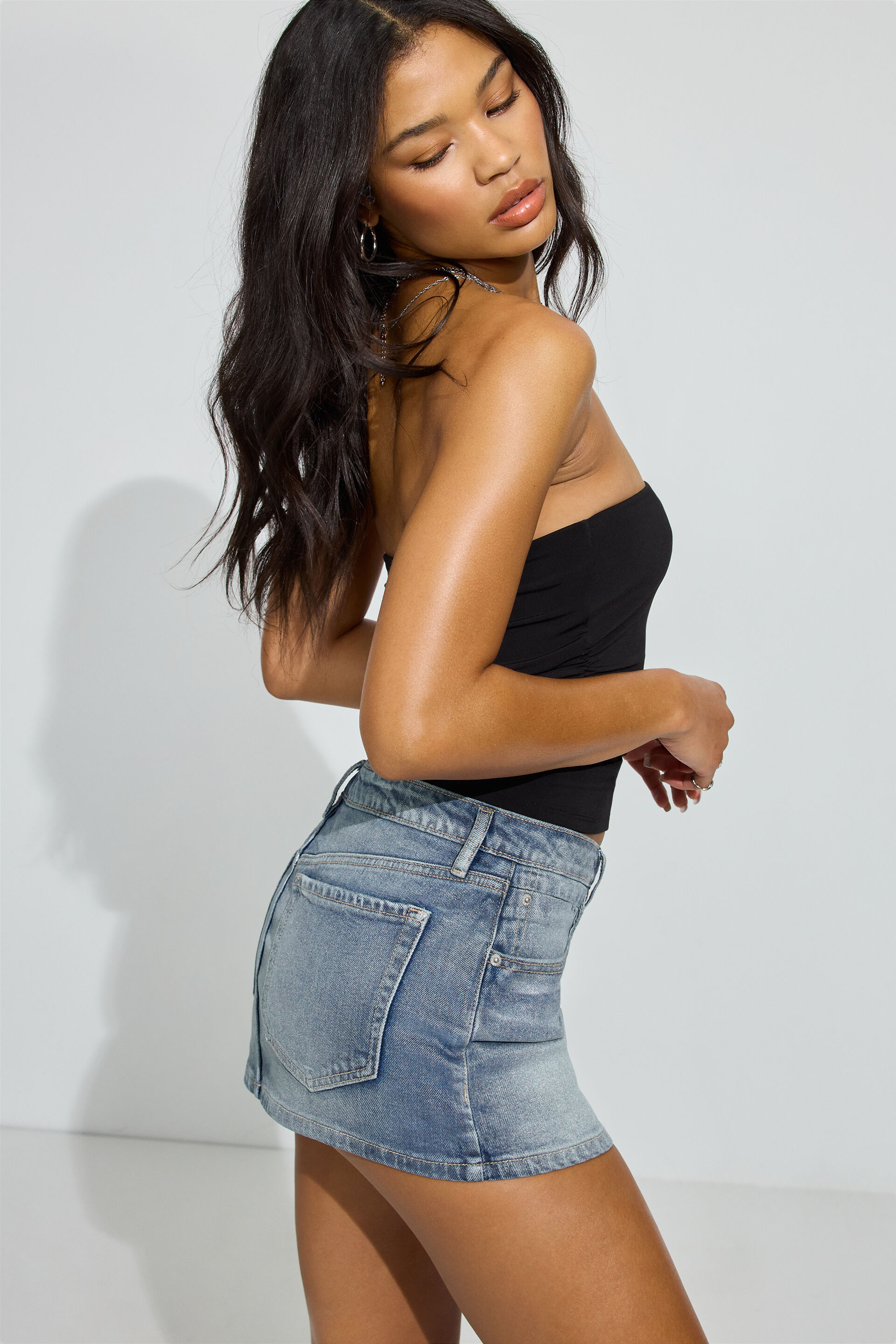 Silver Denim Micro Skort