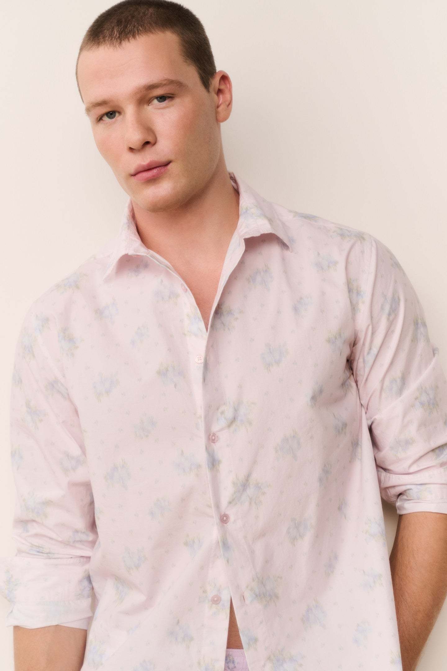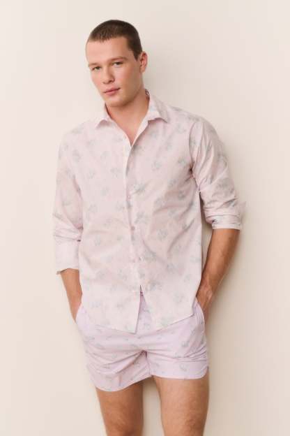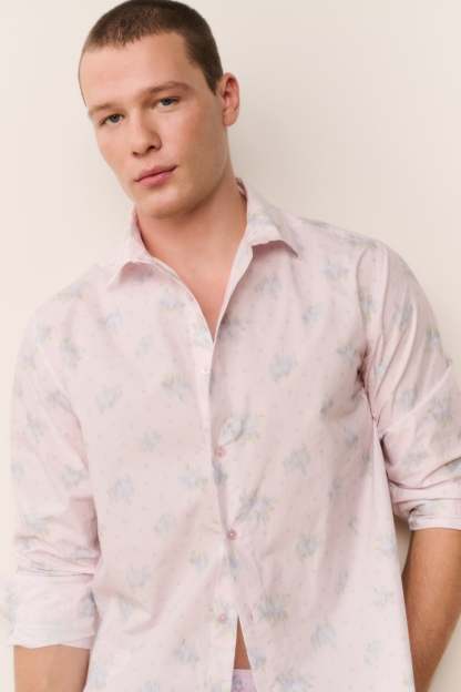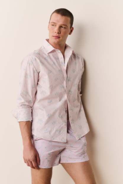 Because the guys like to dress up too. Our first-ever men’s Hudley Shirt is back. Match your beau with this crisp, cotton poplin button down featuring our signature fragrance floral prints. With a relaxed fit, the piece arrives with a center-back box pleat for ease, a collared neckline, long cuffed sleeves, and is finished with a shirttail hem.