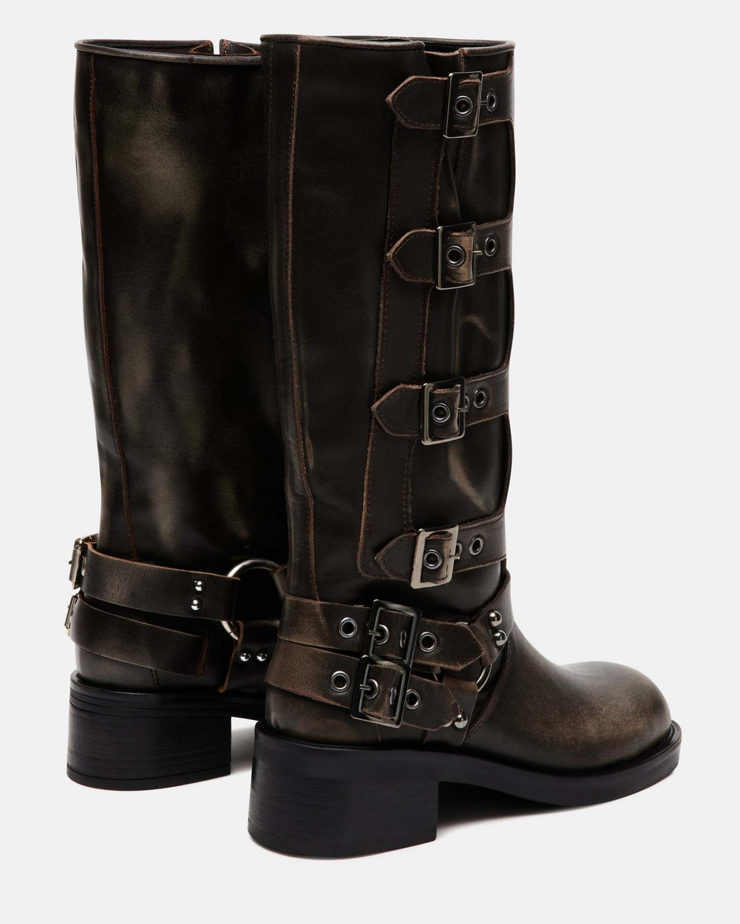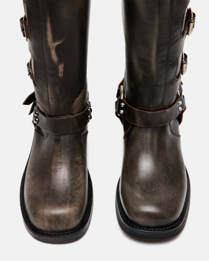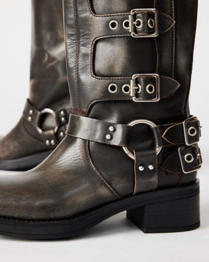 The ROCKY knee聽features the wide profile of an engineer boot with harness and buckle hardware adding an industrial edge and giving the design an adjustable fit.